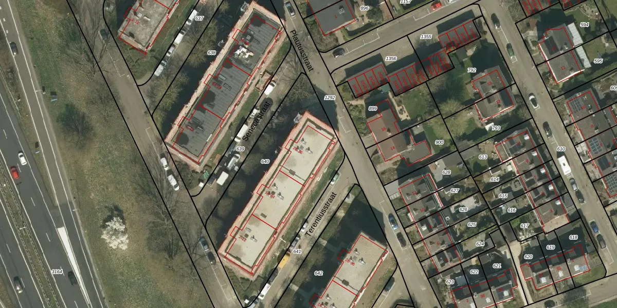 Het perceel waarop Senecastraat 32 staat heeft een oppervlakte van 1620 m². Dit is een zeer groot perceel. De perceeloppervlakte wordt geregistreerd door het Kadaster. Gedetailleerde informatie over de maten van dit perceel kunt u vinden in het rapport Kadastrale kaart met maatvoering van Senecastraat 32.
