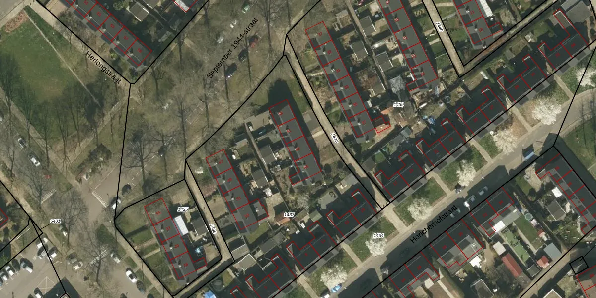 Het perceel waarop September 1944-straat 43 staat heeft een oppervlakte van 3190 m². Dit is een zeer groot perceel. De perceeloppervlakte wordt geregistreerd door het Kadaster. Gedetailleerde informatie over de maten van dit perceel kunt u vinden in het rapport Kadastrale kaart met maatvoering van September 1944-straat 43.