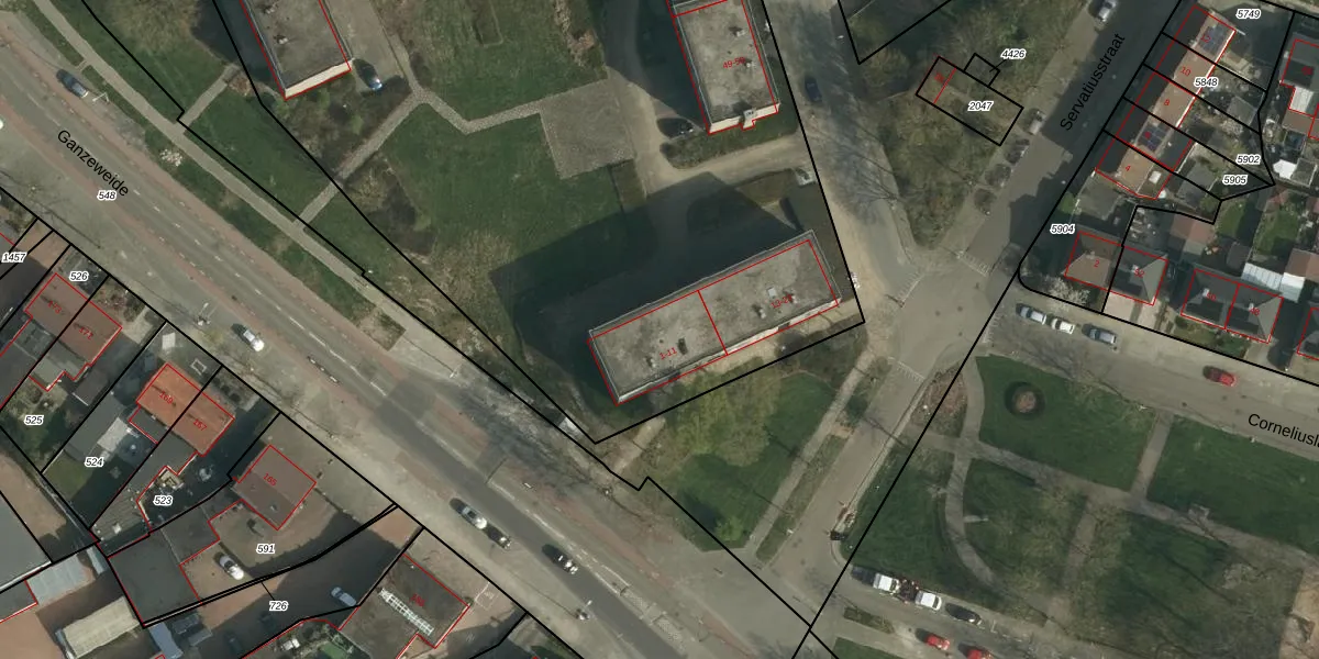 Het perceel waarop Servatiusstraat 1-GB15 staat heeft een oppervlakte van 8940 m². Dit is een zeer groot perceel. De perceeloppervlakte wordt geregistreerd door het Kadaster. Gedetailleerde informatie over de maten van dit perceel kunt u vinden in het rapport Kadastrale kaart met maatvoering van Servatiusstraat 1-GB15.