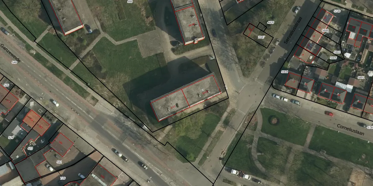 Het perceel waarop Servatiusstraat 1-GB17 staat heeft een oppervlakte van 8940 m². Dit is een zeer groot perceel. De perceeloppervlakte wordt geregistreerd door het Kadaster. Gedetailleerde informatie over de maten van dit perceel kunt u vinden in het rapport Kadastrale kaart met maatvoering van Servatiusstraat 1-GB17.