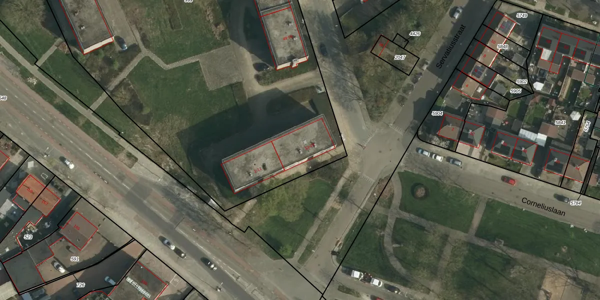 Het perceel waarop Servatiusstraat 17 staat heeft een oppervlakte van 8940 m². Dit is een zeer groot perceel. De perceeloppervlakte wordt geregistreerd door het Kadaster. Gedetailleerde informatie over de maten van dit perceel kunt u vinden in het rapport Kadastrale kaart met maatvoering van Servatiusstraat 17.