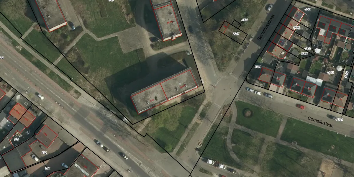 Het perceel waarop Servatiusstraat 19 staat heeft een oppervlakte van 8940 m². Dit is een zeer groot perceel. De perceeloppervlakte wordt geregistreerd door het Kadaster. Gedetailleerde informatie over de maten van dit perceel kunt u vinden in het rapport Kadastrale kaart met maatvoering van Servatiusstraat 19.