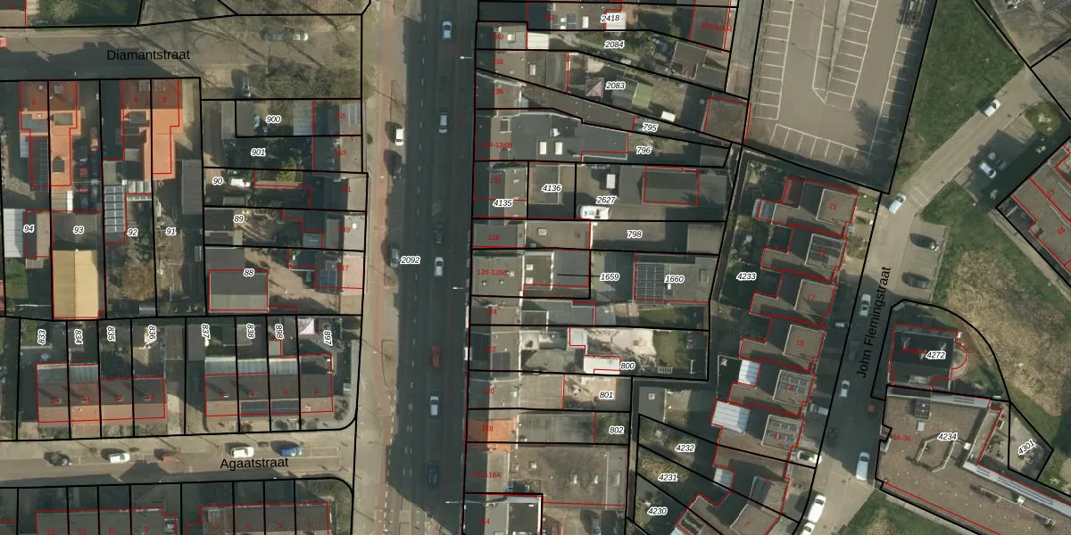 Het perceel waarop het adres ligt is HLN01-R-1659. De afkorting 'HLN01' staat voor kadastrale gemeente Heerlen. Het perceel is kleiner dan gemiddeld in Heerlen. Het perceel is 200 m² groot, terwijl het gemiddelde ligt op 1399,59 m². Het kleinste perceel in de kadastrale gemeente is 0 m² groot. De grootste perceeloppervlakte is 86,1 ha. Er zijn 4 adressen aanwezig op het perceel. In de Basisregistratie Kadaster (BRK) werden de grenzen van het perceel geregistreerd op 13-12-2011.