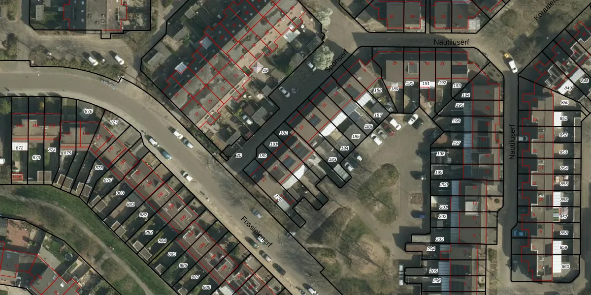 Gebruik de zoekbalk of klik op een perceel voor informatie over de adressen binnen dit perceel.