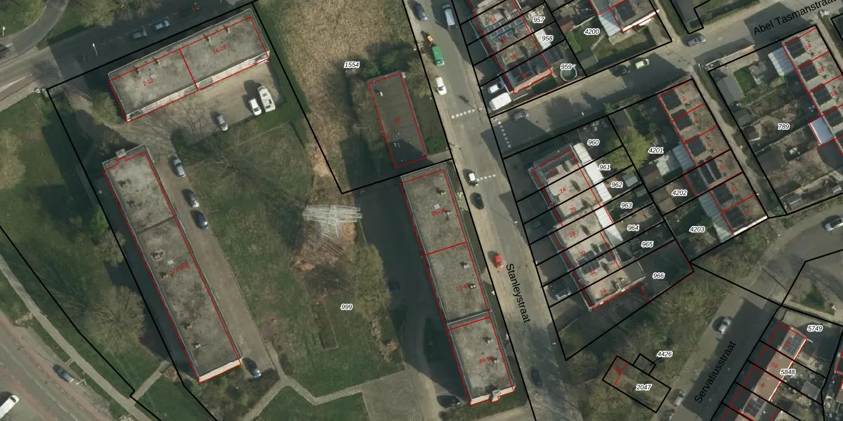 Stanleystraat 25-GB26 is gelegen op kadastraal perceel HLN01O999. Deze kadastrale aanduiding is uniek en wordt gebruikt door het Kadaster om eigendomsrechten en andere zakelijke rechten vast te leggen. Het perceel maakt onderdeel uit van de kadastrale gemeente Heerlen.