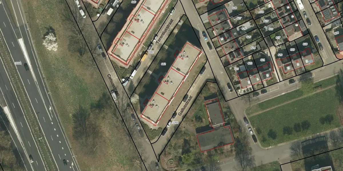 Het perceel waarop Terentiusstraat 24 staat heeft een oppervlakte van 1620 m². Dit is een zeer groot perceel. De perceeloppervlakte wordt geregistreerd door het Kadaster. Gedetailleerde informatie over de maten van dit perceel kunt u vinden in het rapport Kadastrale kaart met maatvoering van Terentiusstraat 24.