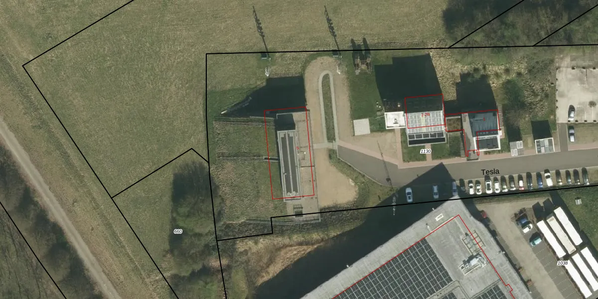 Het perceel waarop Tesla 5 staat heeft een oppervlakte van 7865 m². Dit is een zeer groot perceel. De perceeloppervlakte wordt geregistreerd door het Kadaster. Gedetailleerde informatie over de maten van dit perceel kunt u vinden in het rapport Kadastrale kaart met maatvoering van Tesla 5.