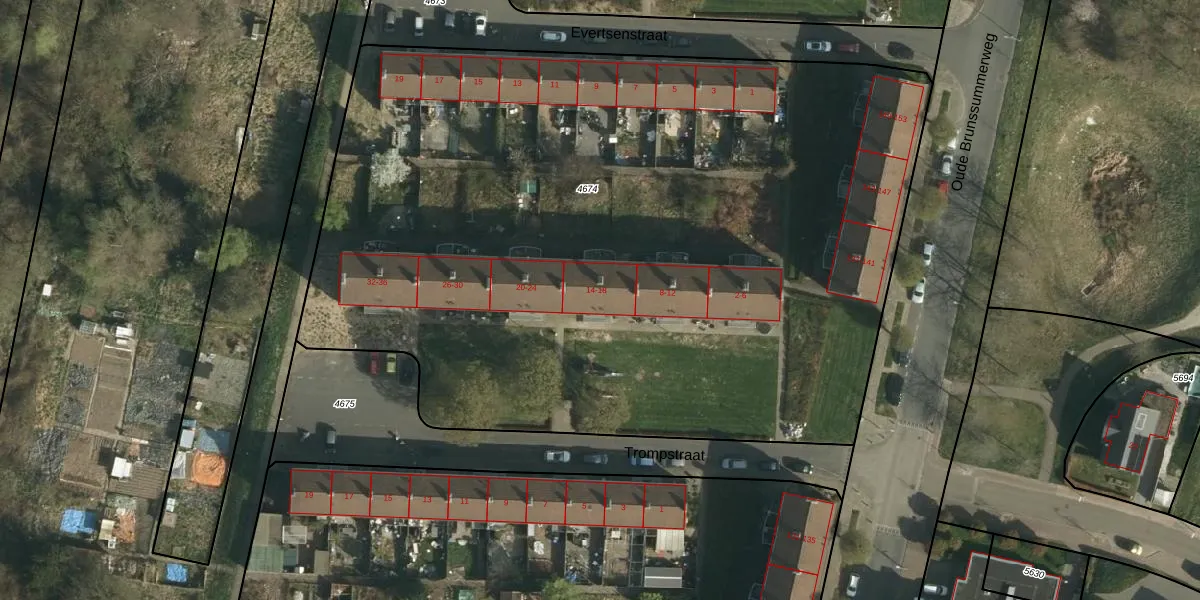 Het perceel waarop Trompstraat 18 staat heeft een oppervlakte van 5790 m². Dit is een zeer groot perceel. De perceeloppervlakte wordt geregistreerd door het Kadaster. Gedetailleerde informatie over de maten van dit perceel kunt u vinden in het rapport Kadastrale kaart met maatvoering van Trompstraat 18.