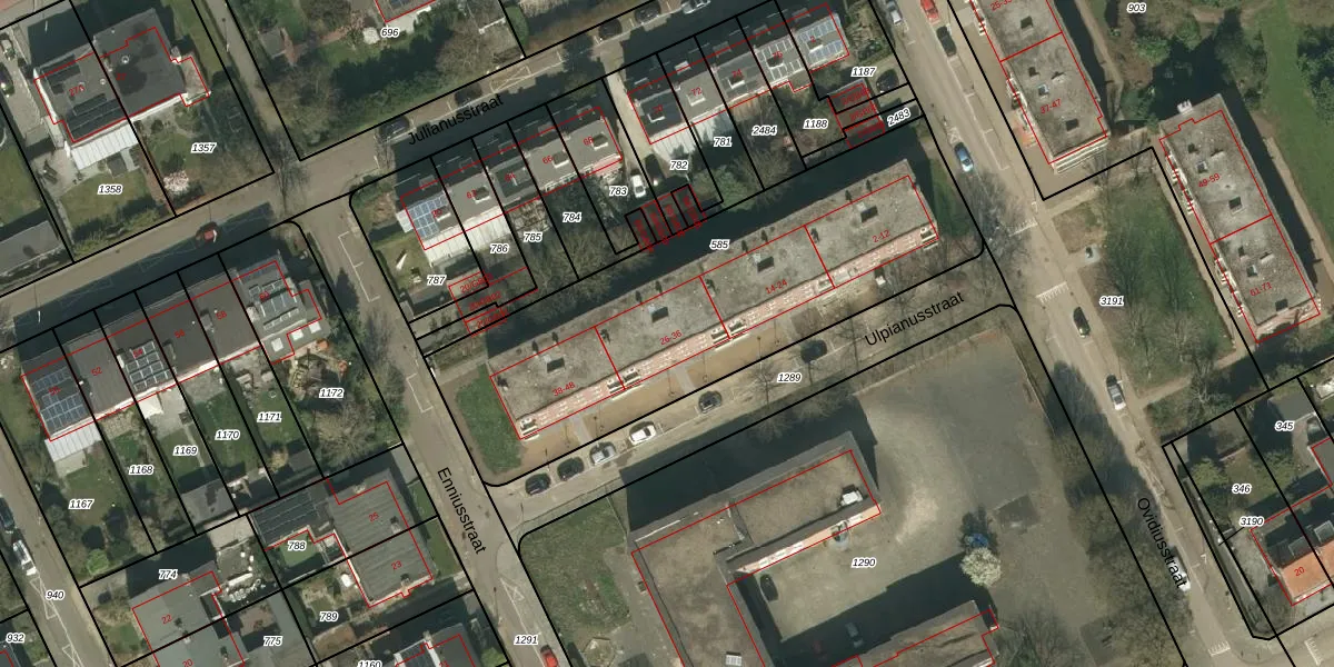 Het perceel waarop Ulpianusstraat 28 staat heeft een oppervlakte van 1870 m². Dit is een zeer groot perceel. De perceeloppervlakte wordt geregistreerd door het Kadaster. Gedetailleerde informatie over de maten van dit perceel kunt u vinden in het rapport Kadastrale kaart met maatvoering van Ulpianusstraat 28.