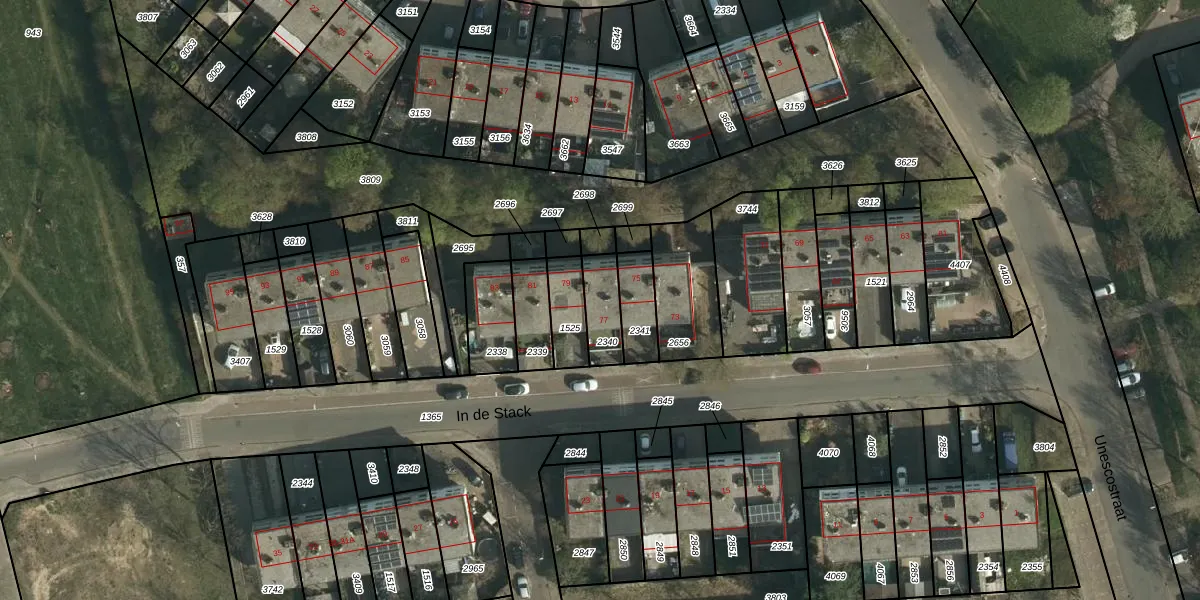 Het perceel waarop Unescostraat 77 staat heeft een oppervlakte van 98 m². Dit is een klein perceel. De perceeloppervlakte wordt geregistreerd door het Kadaster. Gedetailleerde informatie over de maten van dit perceel kunt u vinden in het rapport Kadastrale kaart met maatvoering van Unescostraat 77.