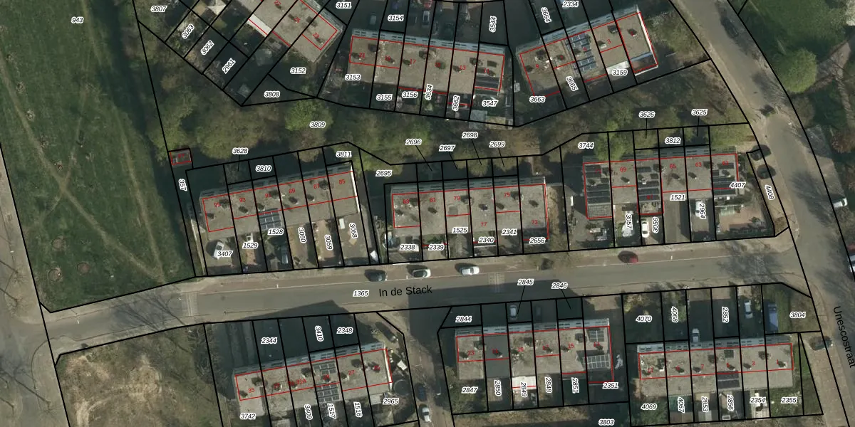 Het perceel waarop Unescostraat 81 staat heeft een oppervlakte van 118 m². Dit is een middelgroot perceel. De perceeloppervlakte wordt geregistreerd door het Kadaster. Gedetailleerde informatie over de maten van dit perceel kunt u vinden in het rapport Kadastrale kaart met maatvoering van Unescostraat 81.