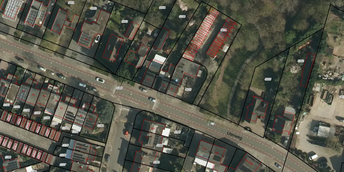 Het perceel waarop Uterweg 93 staat heeft een oppervlakte van 410 m². Dit is een groot perceel. De perceeloppervlakte wordt geregistreerd door het Kadaster. Gedetailleerde informatie over de maten van dit perceel kunt u vinden in het rapport Kadastrale kaart met maatvoering van Uterweg 93.