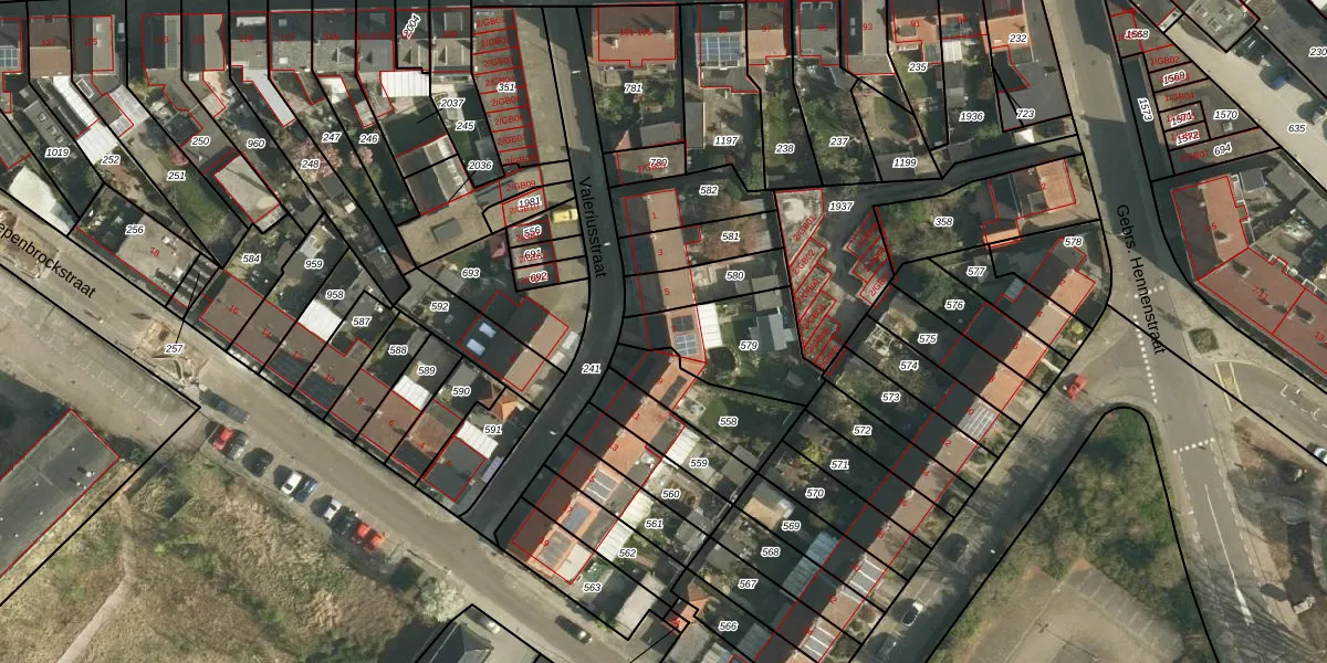 Gebruik de zoekbalk of klik op een perceel voor informatie over de adressen binnen dit perceel.