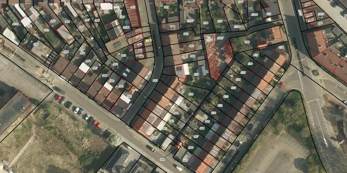 Valeriusstraat 9 is gelegen op kadastraal perceel HLN01L558. Deze kadastrale aanduiding is uniek en wordt gebruikt door het Kadaster om eigendomsrechten en andere zakelijke rechten vast te leggen. Het perceel maakt onderdeel uit van de kadastrale gemeente Heerlen.