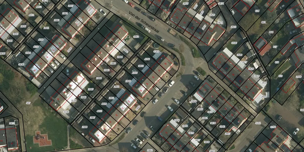 Het perceel waarop Van der Scheurstraat 44 staat heeft een oppervlakte van 165 m². Dit is een middelgroot perceel. De perceeloppervlakte wordt geregistreerd door het Kadaster. Gedetailleerde informatie over de maten van dit perceel kunt u vinden in het rapport Kadastrale kaart met maatvoering van Van der Scheurstraat 44.