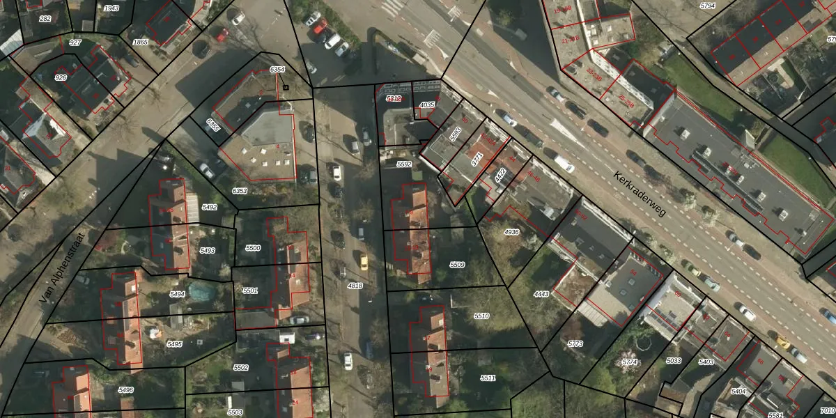 Het adres is gelegen op perceel 5592 in de sectie G en de kadastrale gemeente Heerlen. De kadastrale aanduiding is aldus HLN01-G-5592. De gemiddelde perceelgrootte in Heerlen is 1400,2 m². Dit perceel is kleiner: de perceeloppervlakte bedraagt 340 m². Het grootste perceel in de kadastrale gemeente is 86,1 ha. Het kleinste perceel heeft een oppervlakte van 0 m². Op het perceel liggen in totaal 2 adressen. In de Basisregistratie Kadaster (BRK) werden de grenzen van het perceel geregistreerd op 23-06-2009.