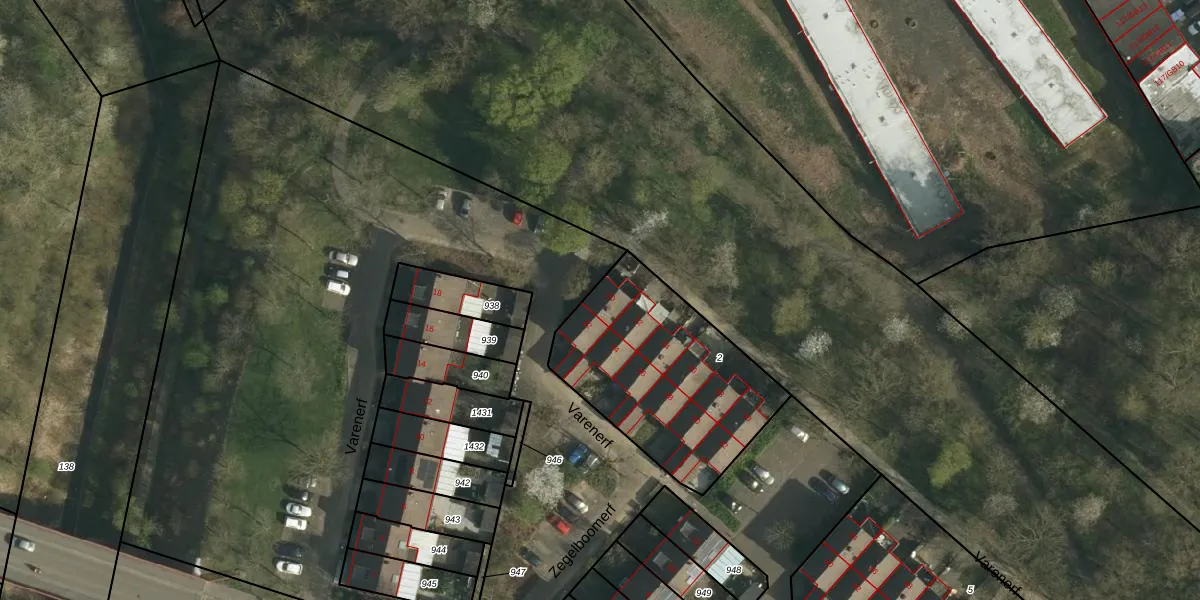 Het perceel waarop Varenerf 20 staat heeft een oppervlakte van 840 m². Dit is een groot perceel. De perceeloppervlakte wordt geregistreerd door het Kadaster. Gedetailleerde informatie over de maten van dit perceel kunt u vinden in het rapport Kadastrale kaart met maatvoering van Varenerf 20.