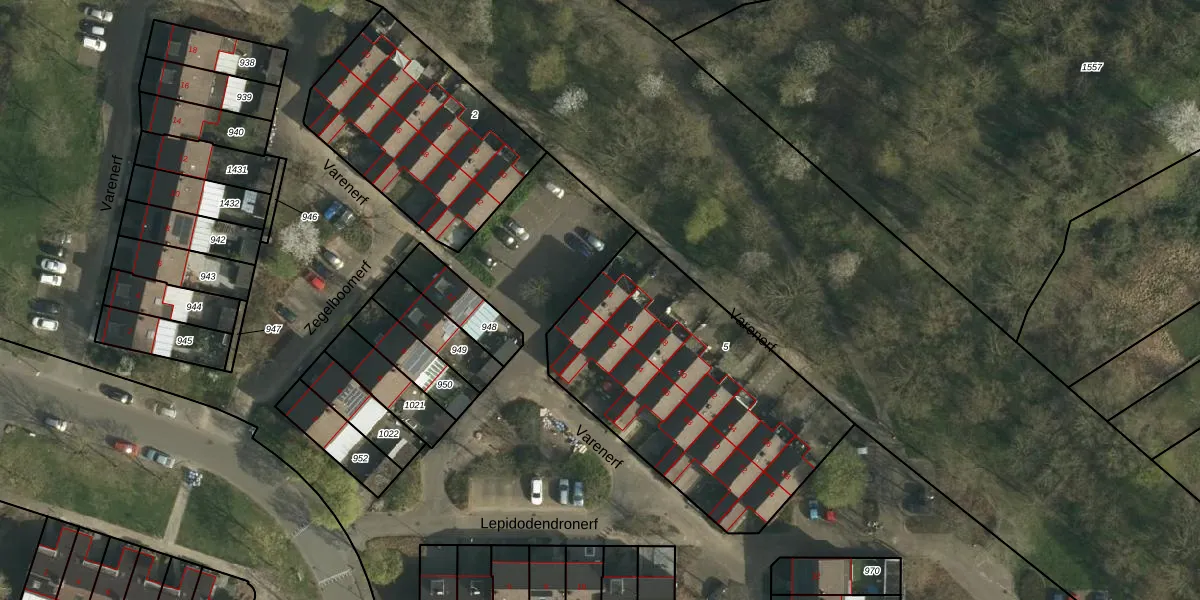 Het perceel waarop Varenerf 44 staat heeft een oppervlakte van 1323 m². Dit is een zeer groot perceel. De perceeloppervlakte wordt geregistreerd door het Kadaster. Gedetailleerde informatie over de maten van dit perceel kunt u vinden in het rapport Kadastrale kaart met maatvoering van Varenerf 44.