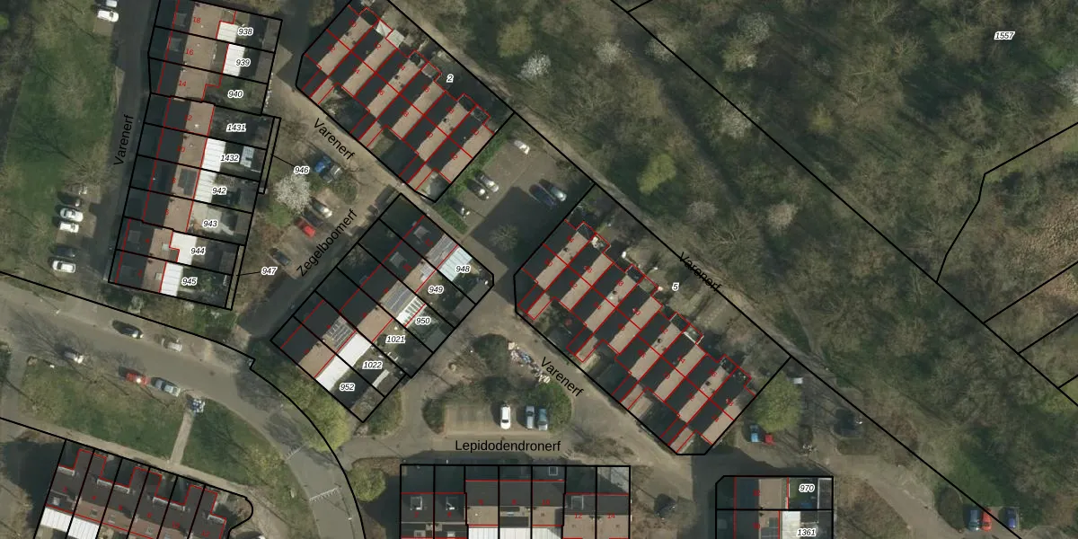Het perceel waarop Varenerf 60 staat heeft een oppervlakte van 1323 m². Dit is een zeer groot perceel. De perceeloppervlakte wordt geregistreerd door het Kadaster. Gedetailleerde informatie over de maten van dit perceel kunt u vinden in het rapport Kadastrale kaart met maatvoering van Varenerf 60.