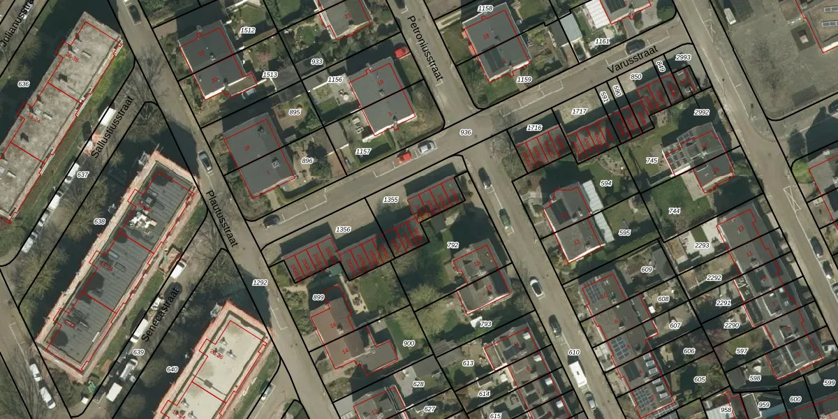 Het perceel waarop Varusstraat 2-GB4 staat heeft een oppervlakte van 300 m². Dit is een groot perceel. De perceeloppervlakte wordt geregistreerd door het Kadaster. Gedetailleerde informatie over de maten van dit perceel kunt u vinden in het rapport Kadastrale kaart met maatvoering van Varusstraat 2-GB4.