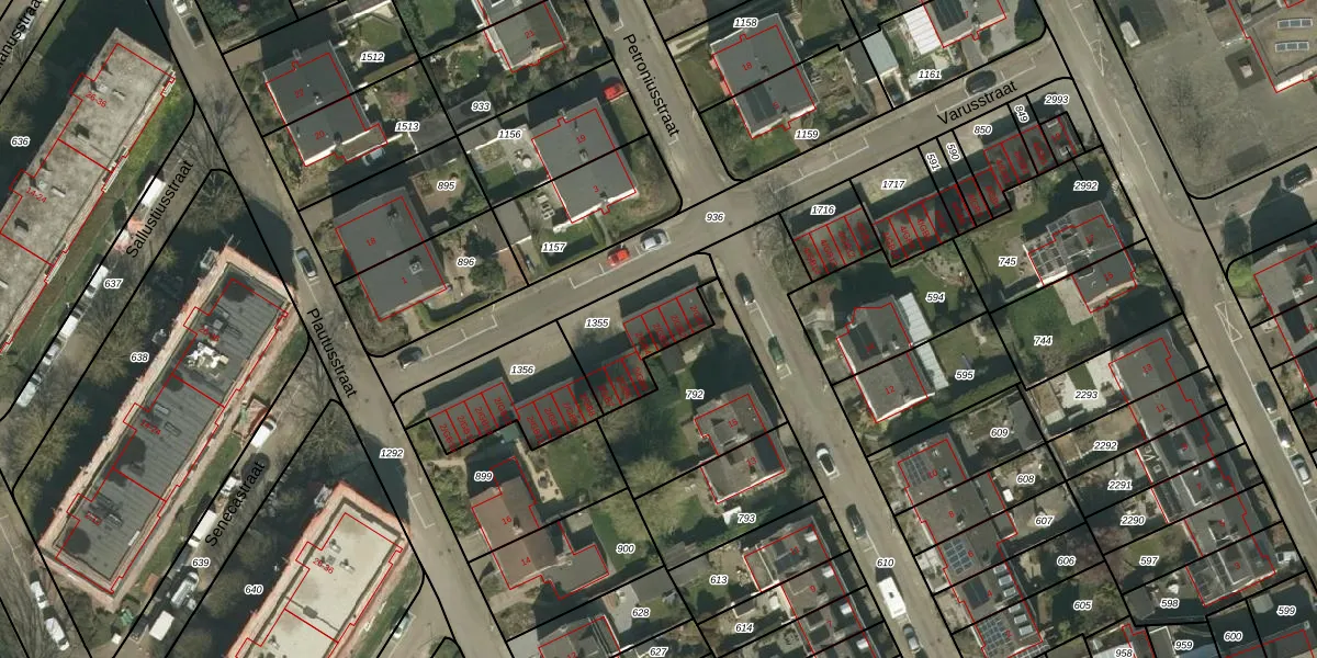 Het perceel waarop Varusstraat 2-GB3 staat heeft een oppervlakte van 300 m². Dit is een groot perceel. De perceeloppervlakte wordt geregistreerd door het Kadaster. Gedetailleerde informatie over de maten van dit perceel kunt u vinden in het rapport Kadastrale kaart met maatvoering van Varusstraat 2-GB3.
