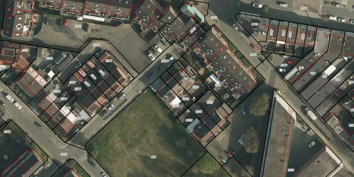Verschuurstraat 38 is gelegen op kadastraal perceel HLN01M2223. Deze kadastrale aanduiding is uniek en wordt gebruikt door het Kadaster om eigendomsrechten en andere zakelijke rechten vast te leggen. Het perceel maakt onderdeel uit van de kadastrale gemeente Heerlen.
