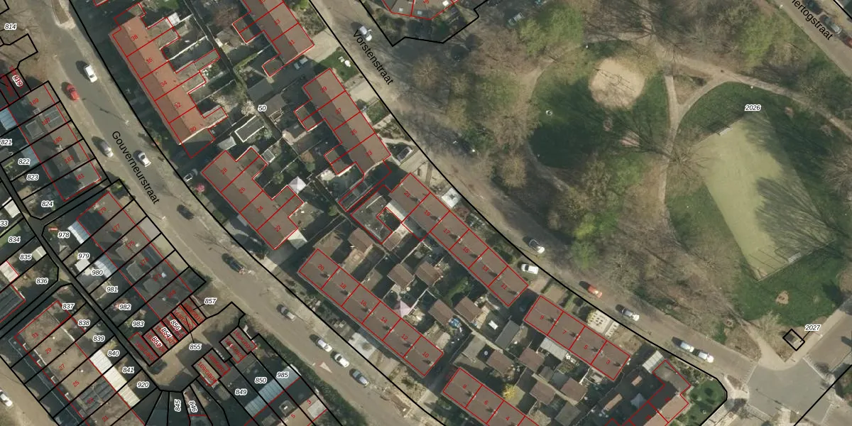 Het perceel waarop Vorstenstraat 19 staat heeft een oppervlakte van 8900 m². Dit is een zeer groot perceel. De perceeloppervlakte wordt geregistreerd door het Kadaster. Gedetailleerde informatie over de maten van dit perceel kunt u vinden in het rapport Kadastrale kaart met maatvoering van Vorstenstraat 19.