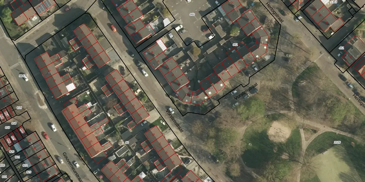 Vorstenstraat 38 is gelegen op kadastraal perceel HLN01L951. Deze kadastrale aanduiding is uniek en wordt gebruikt door het Kadaster om eigendomsrechten en andere zakelijke rechten vast te leggen. Het perceel maakt onderdeel uit van de kadastrale gemeente Heerlen.
