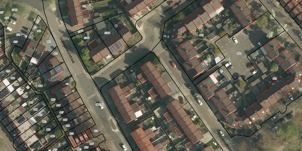 Vorstenstraat 45 is gelegen op kadastraal perceel HLN01L50. Deze kadastrale aanduiding is uniek en wordt gebruikt door het Kadaster om eigendomsrechten en andere zakelijke rechten vast te leggen. Het perceel maakt onderdeel uit van de kadastrale gemeente Heerlen.