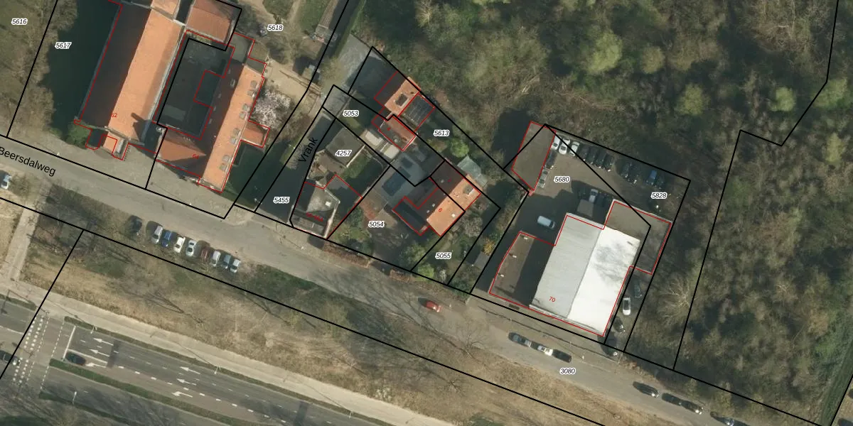 Het perceel waarop Vrank 6 staat heeft een oppervlakte van 422 m². Dit is een groot perceel. De perceeloppervlakte wordt geregistreerd door het Kadaster. Gedetailleerde informatie over de maten van dit perceel kunt u vinden in het rapport Kadastrale kaart met maatvoering van Vrank 6.