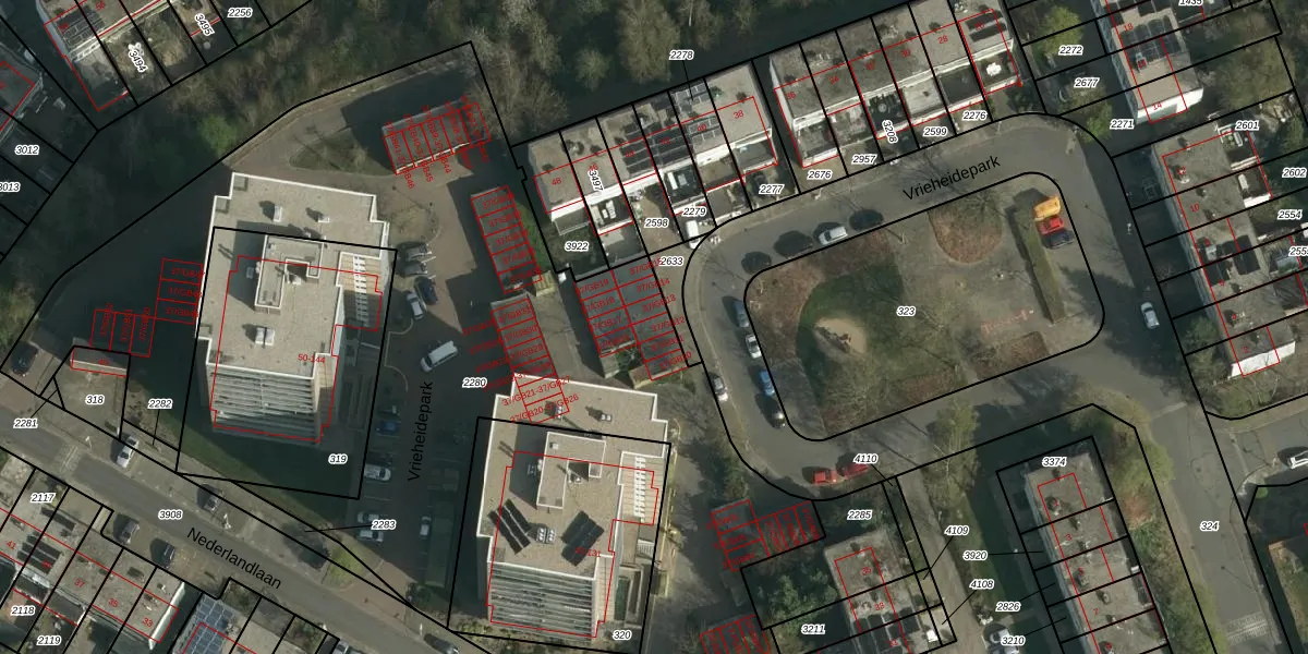 Vrieheidepark 37-GB12 is gelegen op kadastraal perceel HLN01O2280. Deze kadastrale aanduiding is uniek en wordt gebruikt door het Kadaster om eigendomsrechten en andere zakelijke rechten vast te leggen. Het perceel maakt onderdeel uit van de kadastrale gemeente Heerlen.