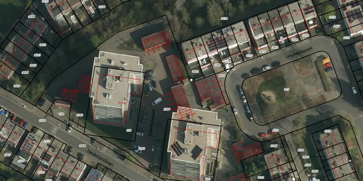 Vrieheidepark 37-GB25 is gelegen op kadastraal perceel HLN01O2280. Deze kadastrale aanduiding is uniek en wordt gebruikt door het Kadaster om eigendomsrechten en andere zakelijke rechten vast te leggen. Het perceel maakt onderdeel uit van de kadastrale gemeente Heerlen.