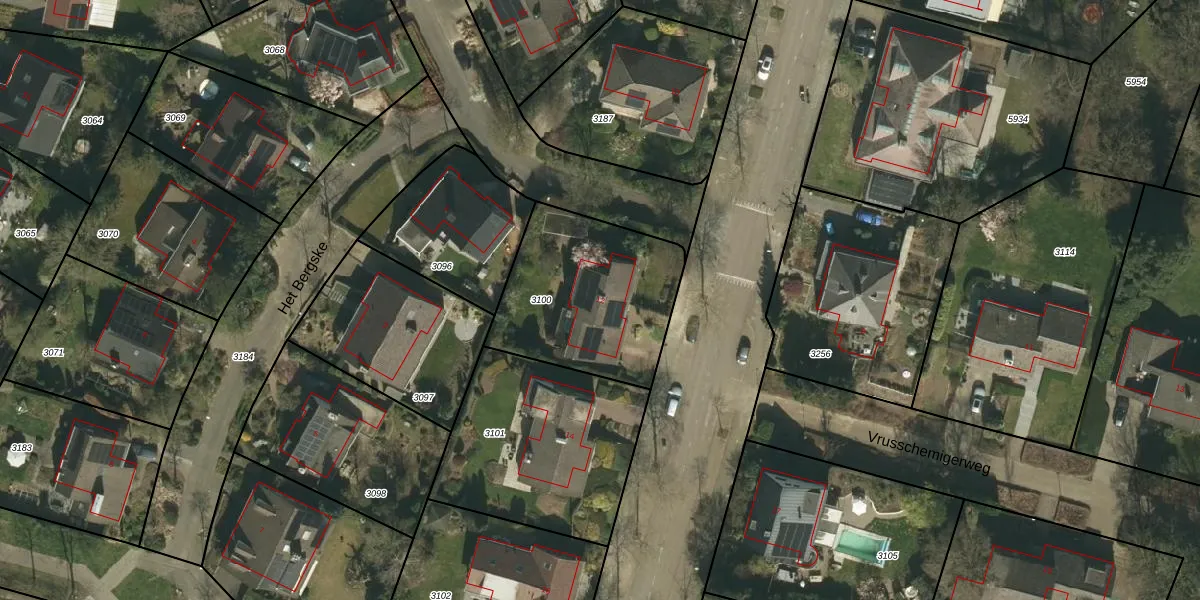 Vrusschemigerweg 12 is gelegen op kadastraal perceel HLN01K3100. Deze kadastrale aanduiding is uniek en wordt gebruikt door het Kadaster om eigendomsrechten en andere zakelijke rechten vast te leggen. Het perceel maakt onderdeel uit van de kadastrale gemeente Heerlen.