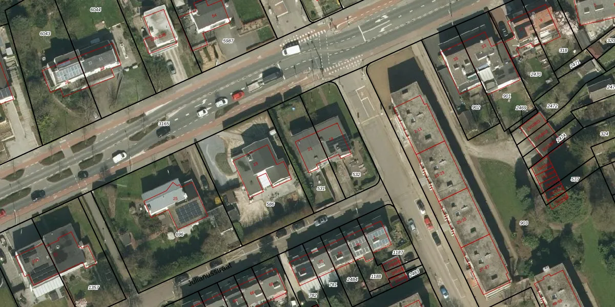 Het adres is gelegen op perceel 531 in de sectie H en de kadastrale gemeente Heerlen. De kadastrale aanduiding is aldus HLN01-H-531. Het perceel is 412 m² groot. Dat is kleiner dan de gemiddelde perceeloppervlakte in Heerlen, dat op 1400,62 m² ligt. Het kleinste perceel in de kadastrale gemeente is 0 m² groot. De grootste perceeloppervlakte is 86,1 ha. Dit is het enige adres dat aanwezig is op het perceel. De huidige grenzen van het perceel zijn digitaal in de Basisregistratie Kadaster (BRK) geregistreerd op 19-06-2009.