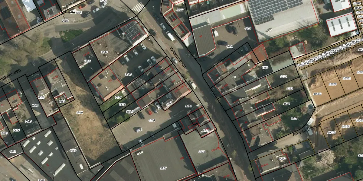 Willemstraat 111 is gelegen op kadastraal perceel HLN01D8283. Deze kadastrale aanduiding is uniek en wordt gebruikt door het Kadaster om eigendomsrechten en andere zakelijke rechten vast te leggen. Het perceel maakt onderdeel uit van de kadastrale gemeente Heerlen.