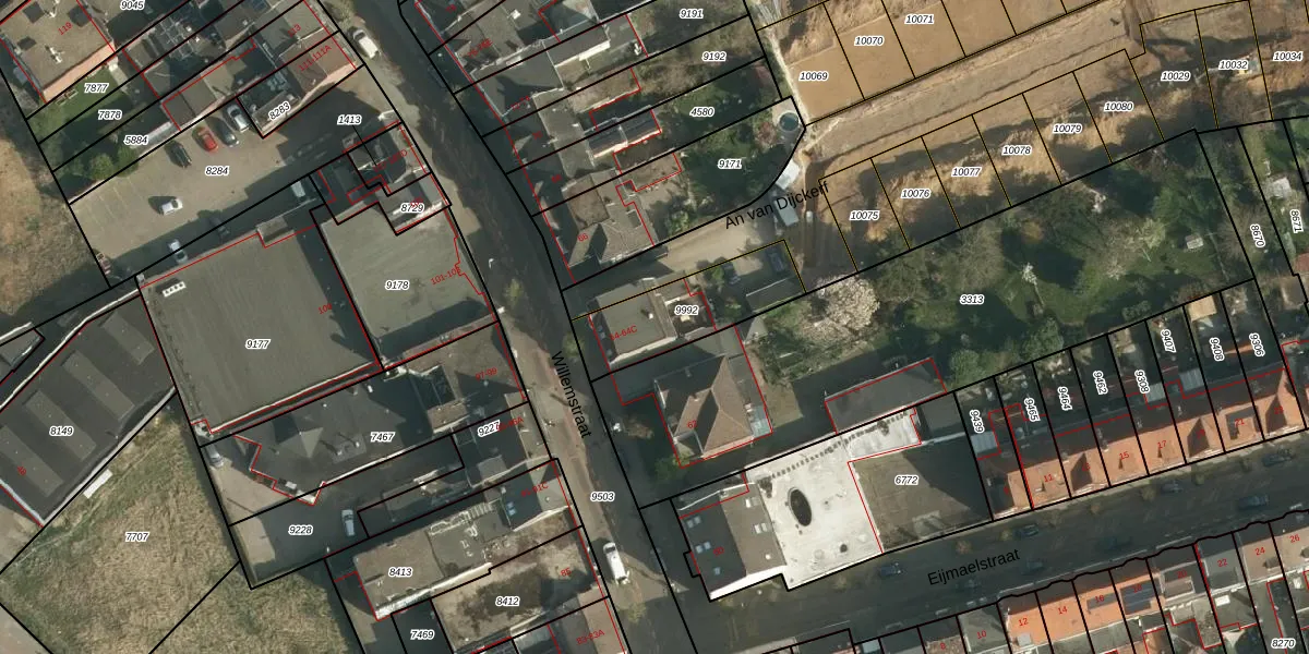 Het perceel waarop Willemstraat 64-A staat heeft een oppervlakte van 333 m². Dit is een groot perceel. De perceeloppervlakte wordt geregistreerd door het Kadaster. Gedetailleerde informatie over de maten van dit perceel kunt u vinden in het rapport Kadastrale kaart met maatvoering van Willemstraat 64-A.