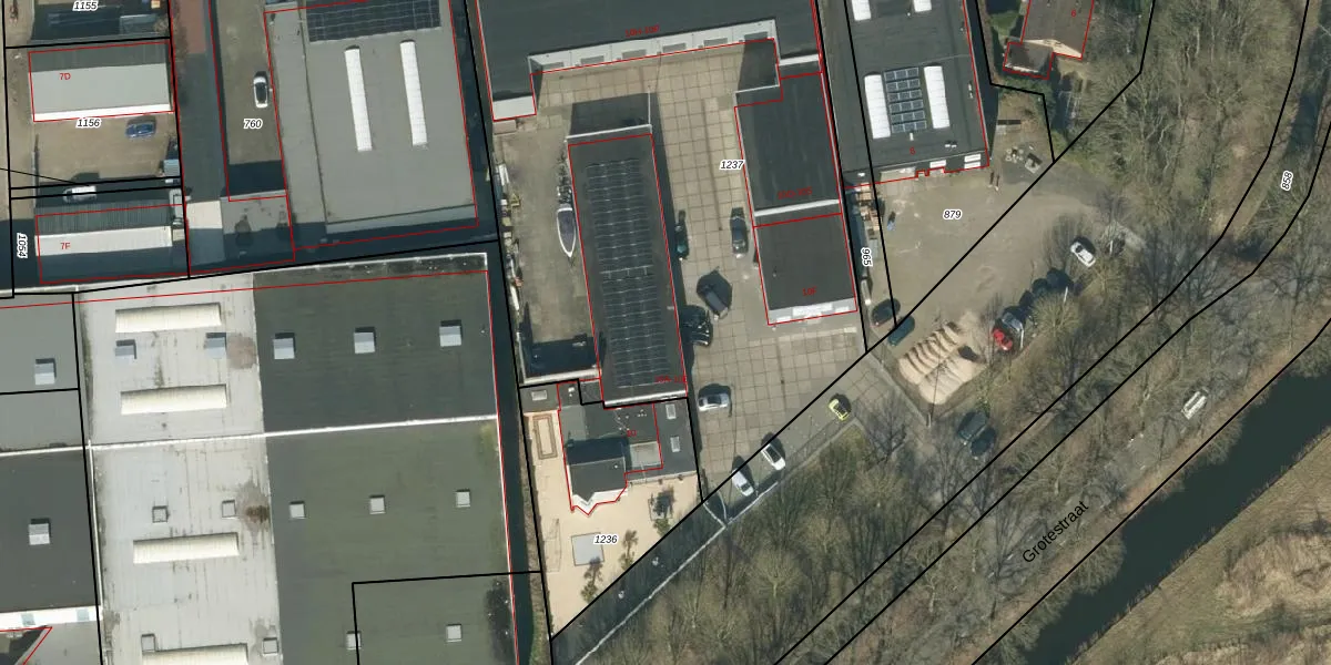 Het perceel waarop Grotestraat 10-B staat heeft een oppervlakte van 3529 m². Dit is een zeer groot perceel. De perceeloppervlakte wordt geregistreerd door het Kadaster. Gedetailleerde informatie over de maten van dit perceel kunt u vinden in het rapport Kadastrale kaart met maatvoering van Grotestraat 10-B.