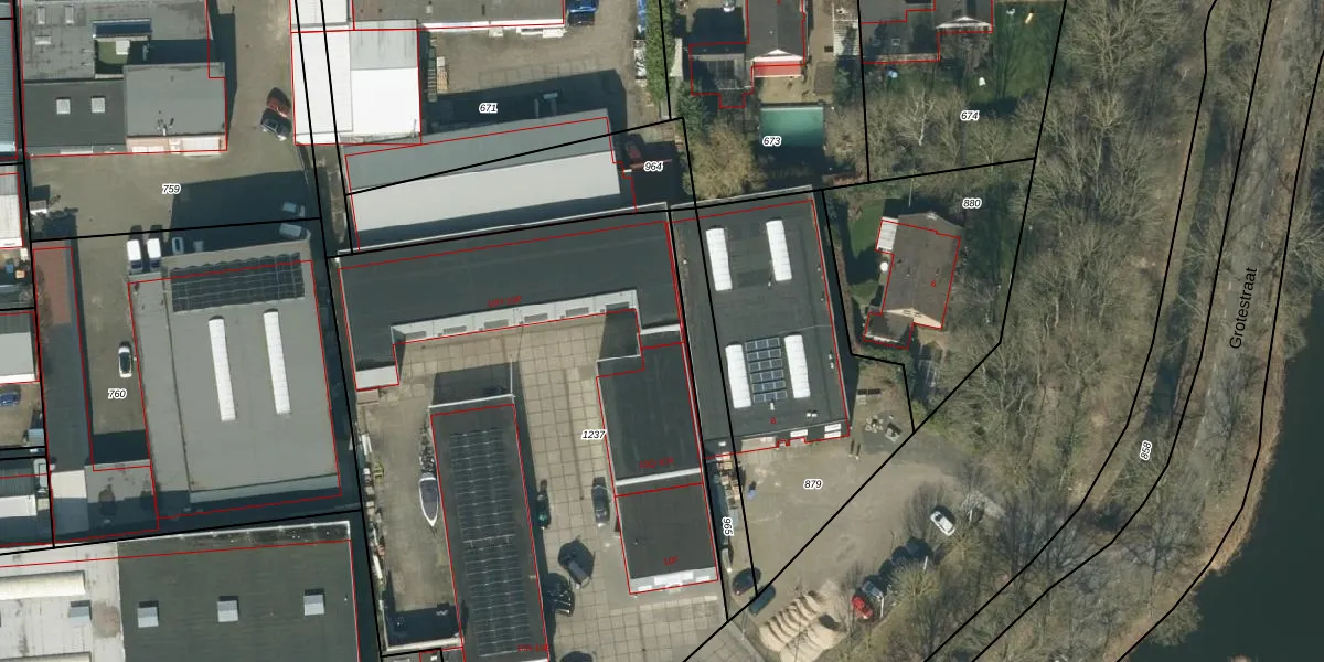 Het perceel waarop Grotestraat 10-P staat heeft een oppervlakte van 3529 m². Dit is een zeer groot perceel. De perceeloppervlakte wordt geregistreerd door het Kadaster. Gedetailleerde informatie over de maten van dit perceel kunt u vinden in het rapport Kadastrale kaart met maatvoering van Grotestraat 10-P.