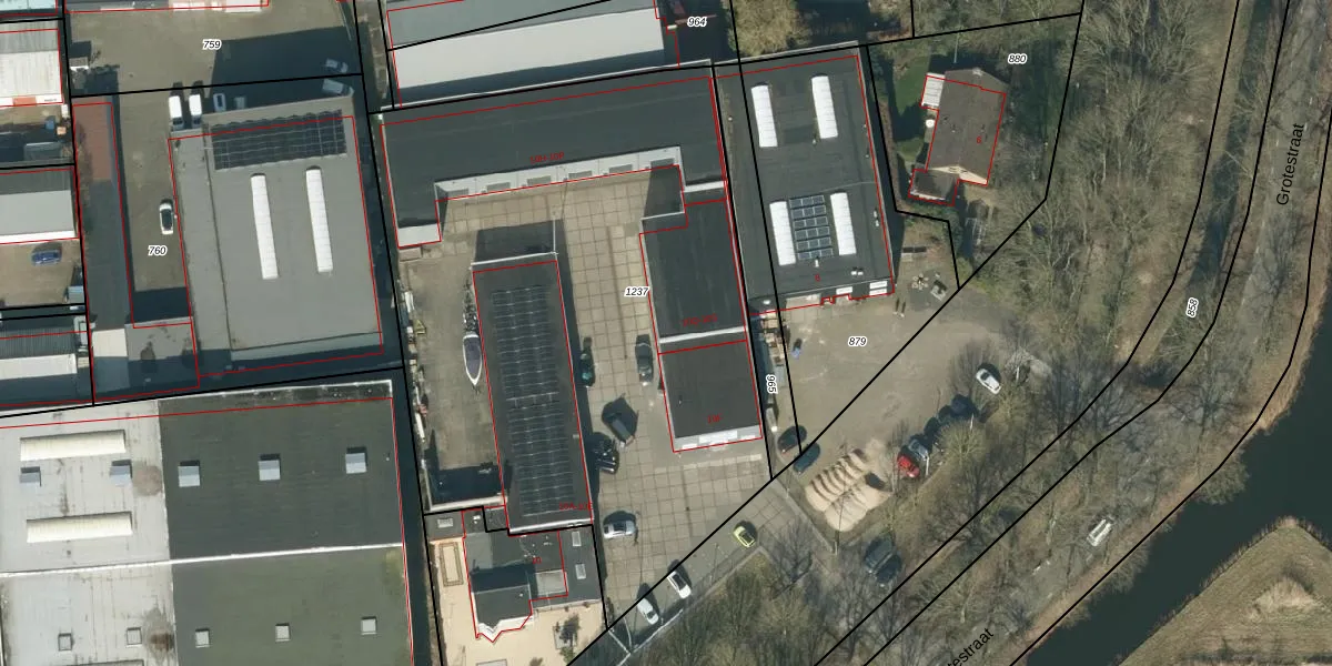 Het perceel waarop Grotestraat 10-S staat heeft een oppervlakte van 3529 m². Dit is een zeer groot perceel. De perceeloppervlakte wordt geregistreerd door het Kadaster. Gedetailleerde informatie over de maten van dit perceel kunt u vinden in het rapport Kadastrale kaart met maatvoering van Grotestraat 10-S.