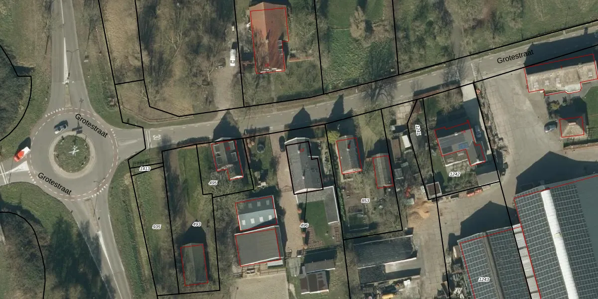 Grotestraat 13 is gelegen op kadastraal perceel HDN02F496. Deze kadastrale aanduiding is uniek en wordt gebruikt door het Kadaster om eigendomsrechten en andere zakelijke rechten vast te leggen. Het perceel maakt onderdeel uit van de kadastrale gemeente Heusden.