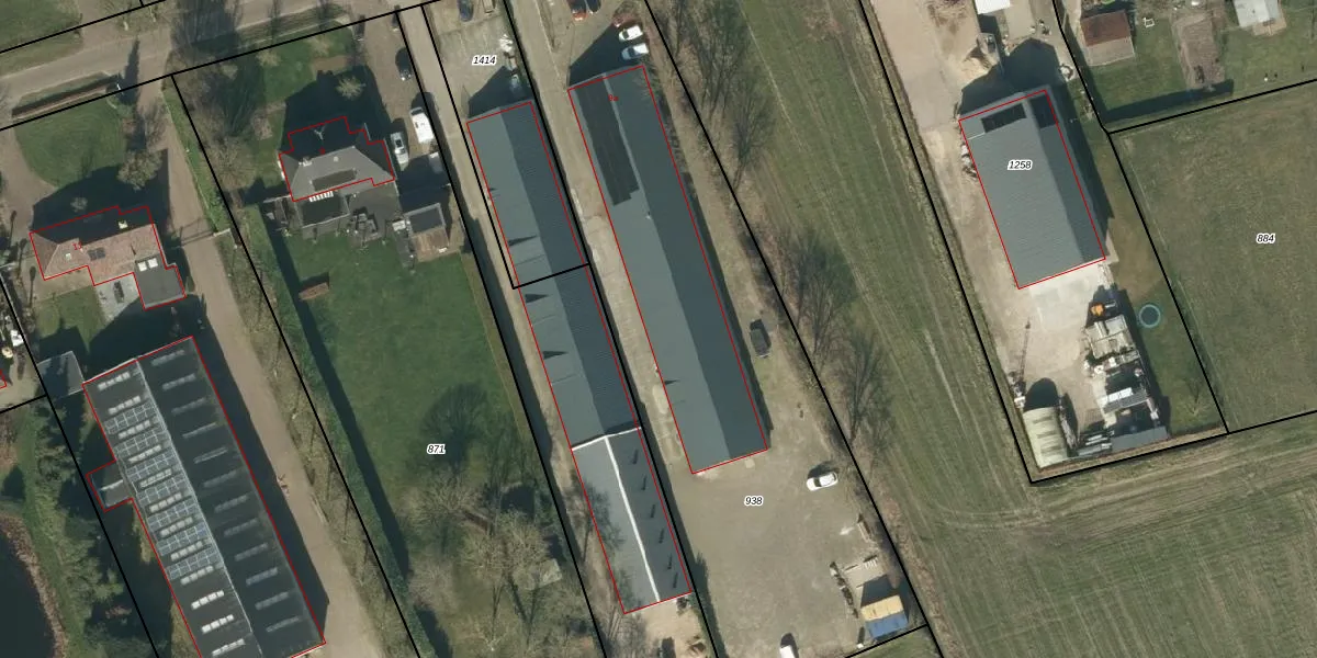 Het perceel waarop het adres ligt is HEE02-F-938. De afkorting 'HEE02' staat voor kadastrale gemeente Heesch. Het perceel is met 2932 m² relatief groot. Het gemiddelde ligt in de kadastrale gemeente Heesch op 2872,44 m². De grootste perceeloppervlakte in de kadastrale gemeente is 50,1 ha. De kleinste oppervlakte bedraagt 0 m². Er zijn 7 adressen aanwezig op het perceel. De huidige grenzen van het perceel zijn digitaal in de Basisregistratie Kadaster (BRK) geregistreerd op 14-12-2022.
