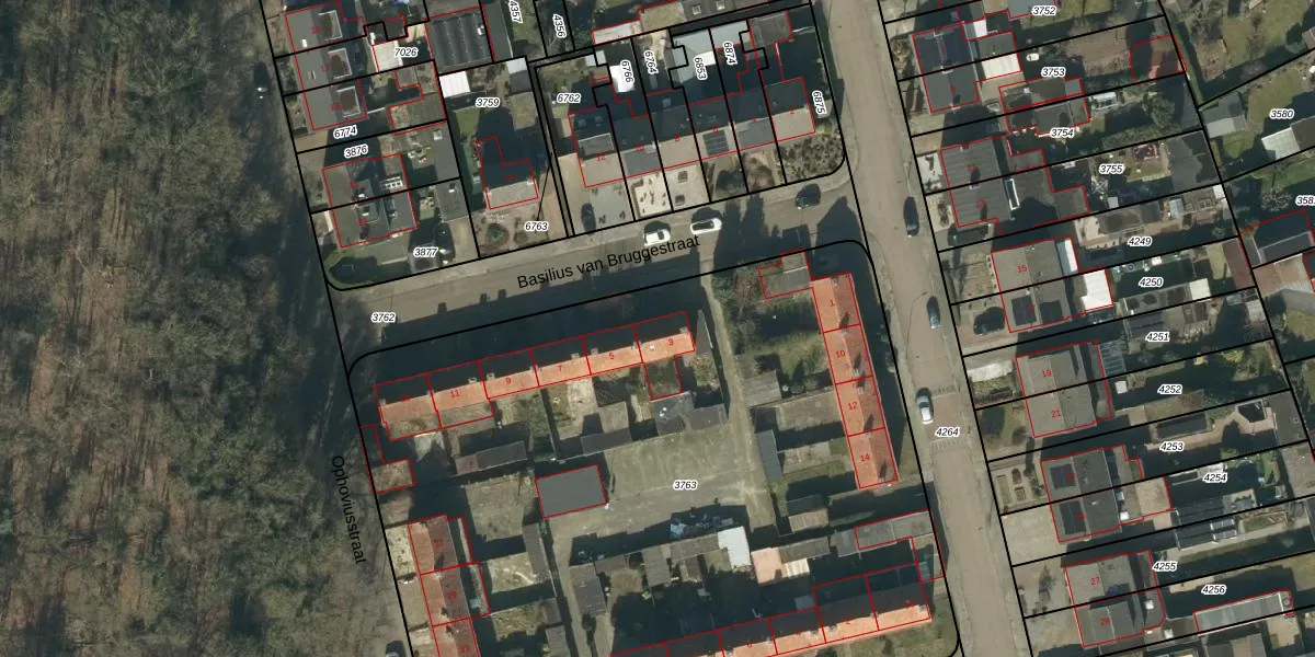 Het perceel waarop Basilius van Bruggestraat 3 staat heeft een oppervlakte van 5380 m². Dit is een zeer groot perceel. De perceeloppervlakte wordt geregistreerd door het Kadaster. Gedetailleerde informatie over de maten van dit perceel kunt u vinden in het rapport Kadastrale kaart met maatvoering van Basilius van Bruggestraat 3.