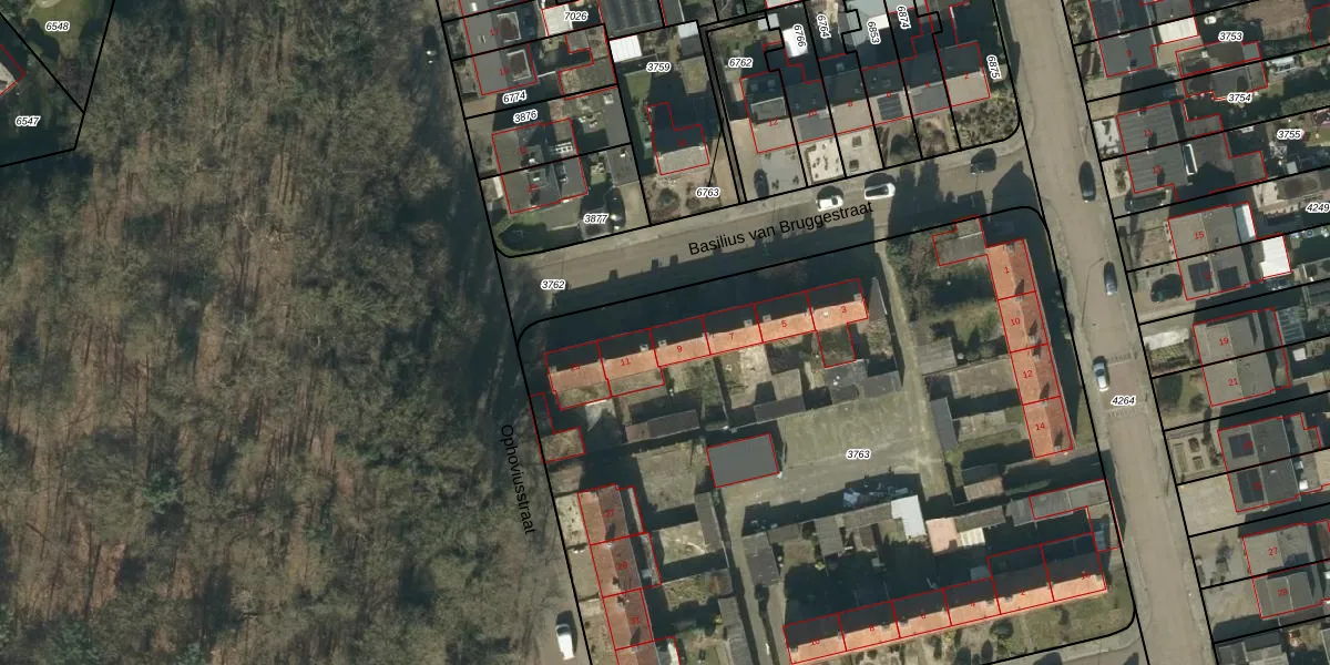 Basilius van Bruggestraat 9 is gelegen op kadastraal perceel HEE02B3763. Deze kadastrale aanduiding is uniek en wordt gebruikt door het Kadaster om eigendomsrechten en andere zakelijke rechten vast te leggen. Het perceel maakt onderdeel uit van de kadastrale gemeente Heesch.