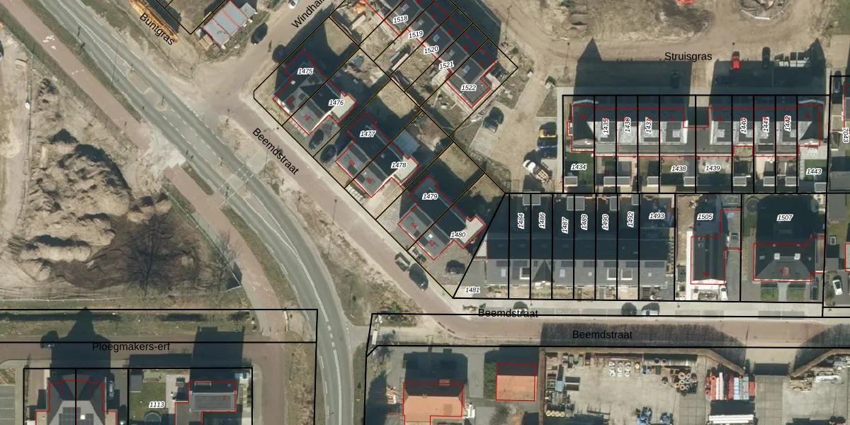 Gebruik de zoekbalk of klik op een perceel voor informatie over de adressen binnen dit perceel.