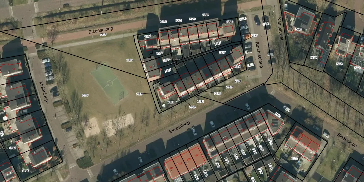 Het perceel waarop Biezenloop 41 staat heeft een oppervlakte van 107 m². Dit is een middelgroot perceel. De perceeloppervlakte wordt geregistreerd door het Kadaster. Gedetailleerde informatie over de maten van dit perceel kunt u vinden in het rapport Kadastrale kaart met maatvoering van Biezenloop 41.