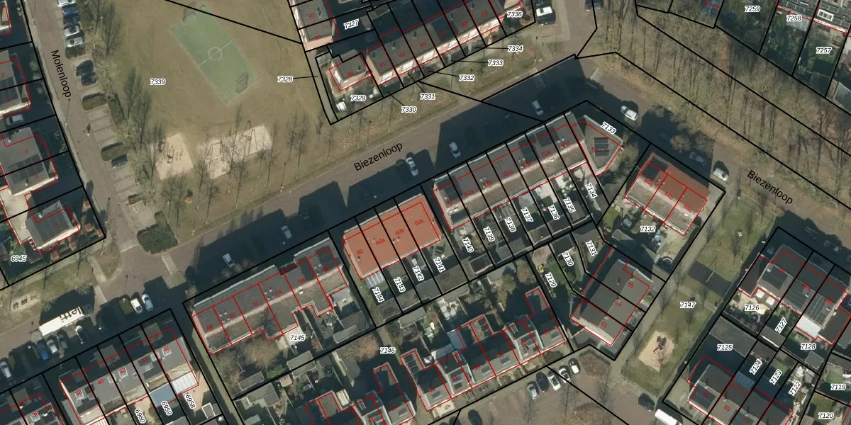 Het perceel waarop Biezenloop 60-c staat heeft een oppervlakte van 181 m². Dit is een middelgroot perceel. De perceeloppervlakte wordt geregistreerd door het Kadaster. Gedetailleerde informatie over de maten van dit perceel kunt u vinden in het rapport Kadastrale kaart met maatvoering van Biezenloop 60-c.