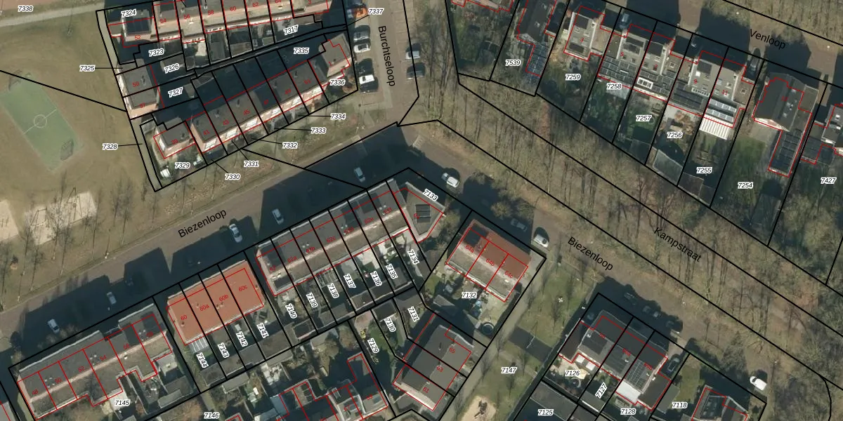 Biezenloop 64 is gelegen op kadastraal perceel HEE02B7133. Deze kadastrale aanduiding is uniek en wordt gebruikt door het Kadaster om eigendomsrechten en andere zakelijke rechten vast te leggen. Het perceel maakt onderdeel uit van de kadastrale gemeente Heesch.