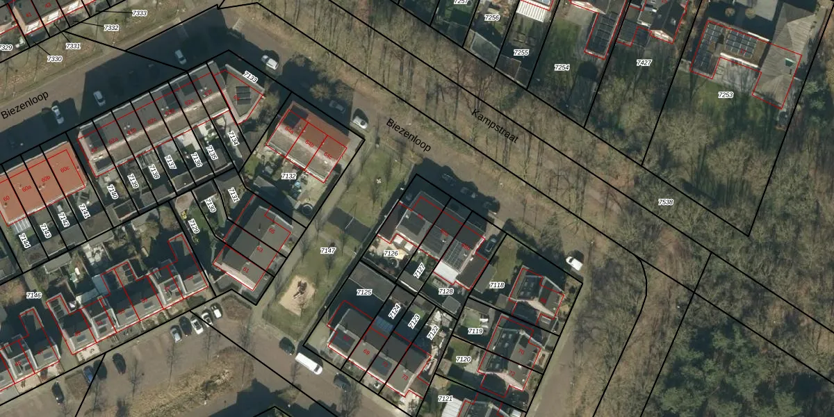 Biezenloop 66 is gelegen op kadastraal perceel HEE02B7126. Deze kadastrale aanduiding is uniek en wordt gebruikt door het Kadaster om eigendomsrechten en andere zakelijke rechten vast te leggen. Het perceel maakt onderdeel uit van de kadastrale gemeente Heesch.