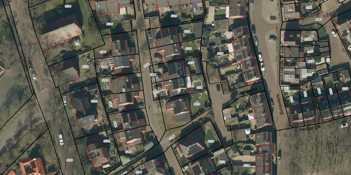Het perceel waarop het adres ligt is HEE02-B-5278. De afkorting 'HEE02' staat voor kadastrale gemeente Heesch. De gemiddelde perceelgrootte in Heesch is 2877,15 m². Dit perceel is kleiner: de perceeloppervlakte bedraagt 278 m². Het grootste perceel in de kadastrale gemeente is 50,1 ha. Het kleinste perceel heeft een oppervlakte van 0 m². Dit is het enige adres dat aanwezig is op het perceel. De huidige grenzen van het perceel zijn digitaal in de Basisregistratie Kadaster (BRK) geregistreerd op 09-11-2006.