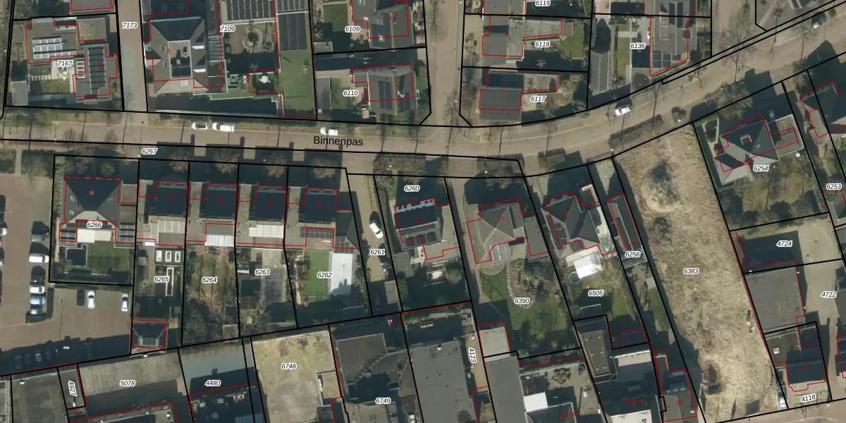 Het perceel waarop Binnenpas 29 staat heeft een oppervlakte van 515 m². Dit is een groot perceel. De perceeloppervlakte wordt geregistreerd door het Kadaster. Gedetailleerde informatie over de maten van dit perceel kunt u vinden in het rapport Kadastrale kaart met maatvoering van Binnenpas 29.